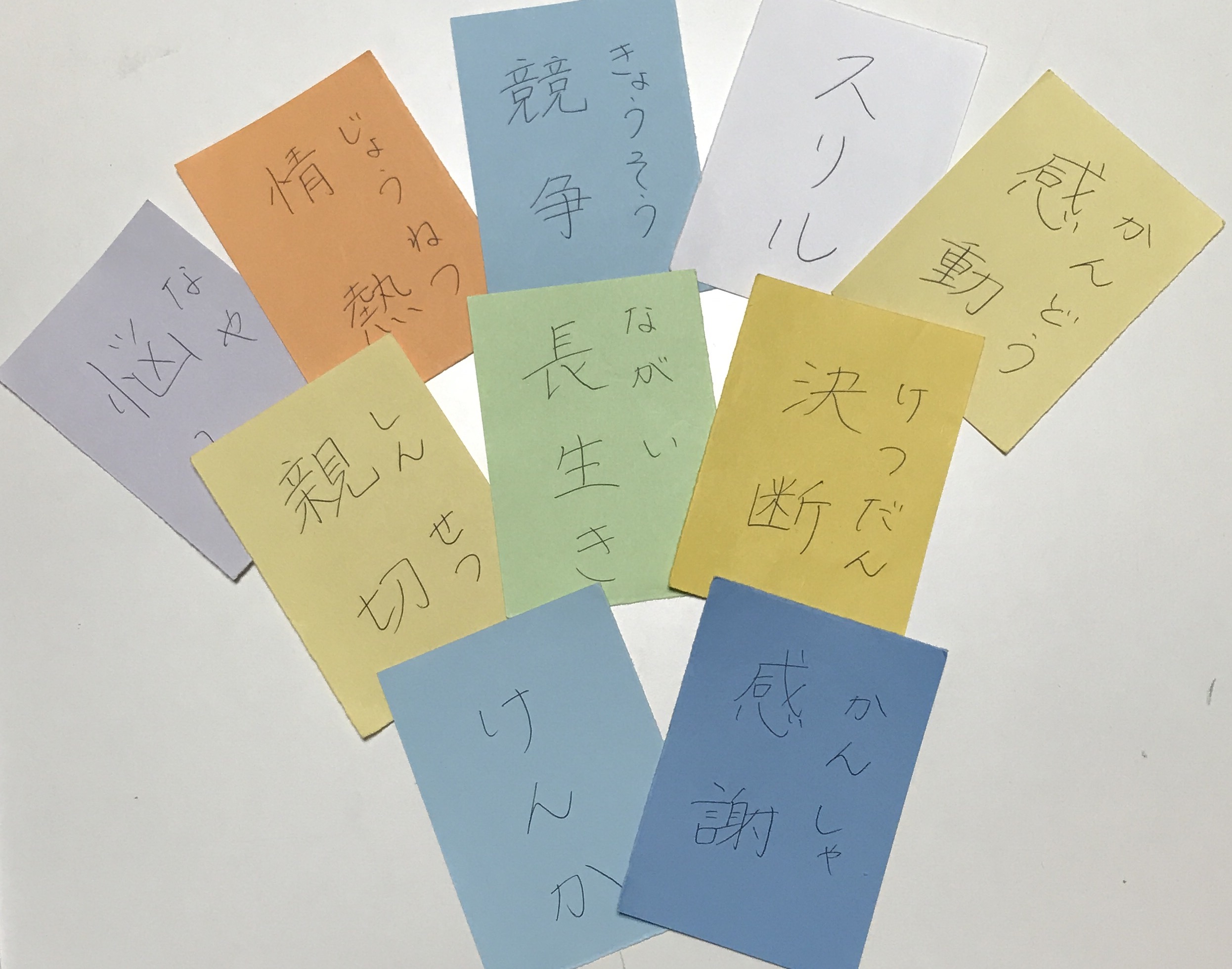 今日はみんなの活動でA.大事ババ抜きB.スリーヒントゲームをしました!Aの大事ババ抜きでは、「家族」「勉強」「夢」などの様々な単語が書かれたカードを使います。まずはランダムに手札を3枚取り、時計回りにババ抜きのように隣の人のカードを引きます...