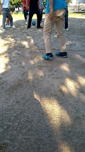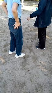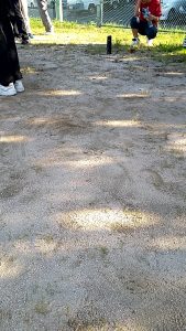 外(外側)に行きます。外野はボールを転がし、内野をあてます。