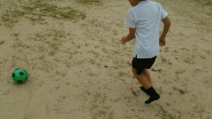 素早く当てたいからボールを蹴っちゃう男の子