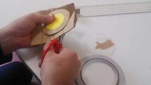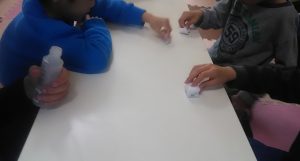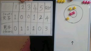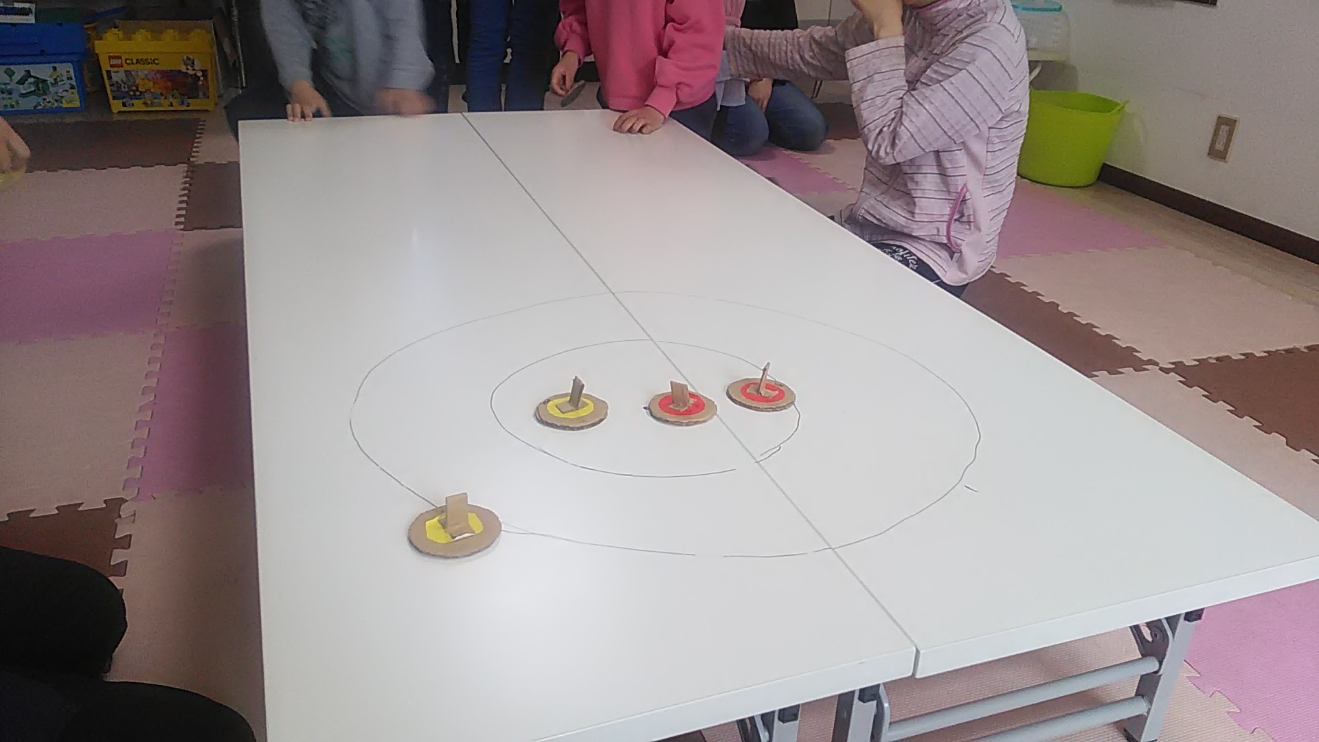 ターゲットの真ん中目指して、そろ~りとすべらす子どもたち