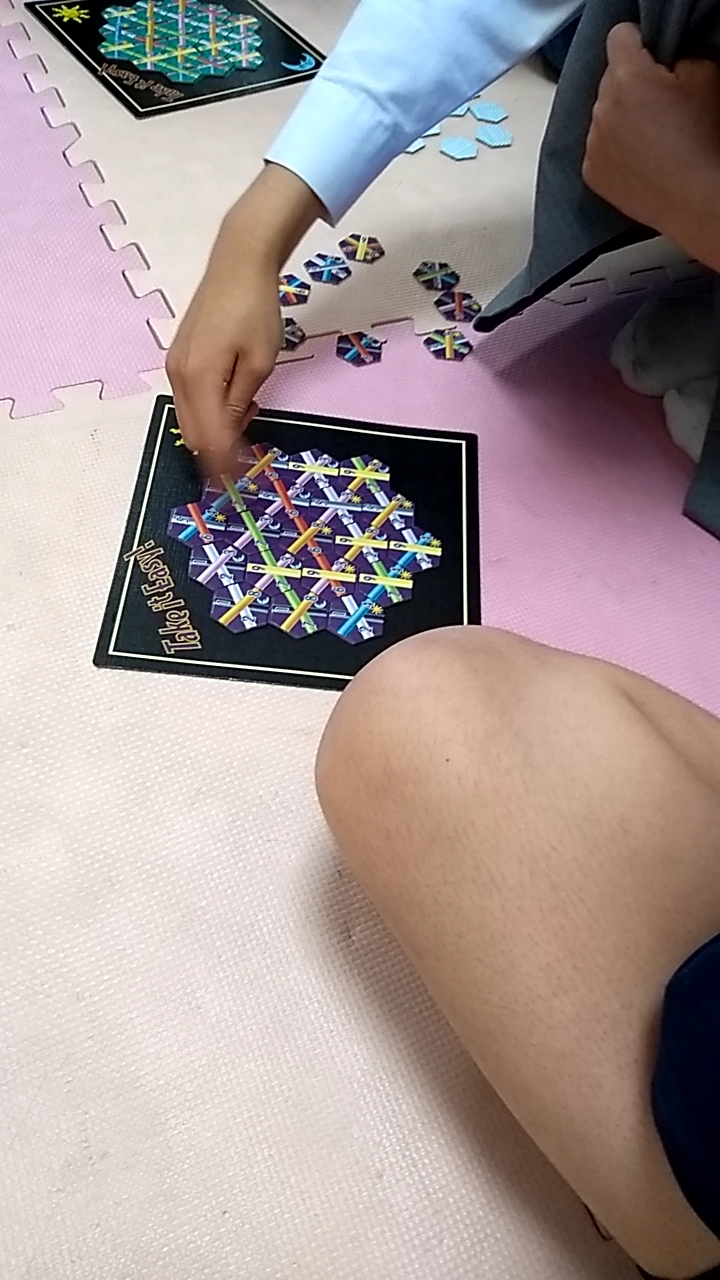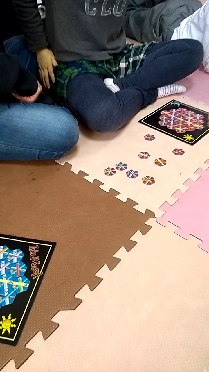 Take it Easy ! X Facebook はてブ Pocket LINE コピー 2019.04.15 放課後等デイサービスPier草津南です。 休み明けですが新しい制服のお友だちもいてワイワイと元気いっぱいの 子どもたちでした\(^_^)/ 今日の活動は初登場の 「テイク・イット・イージー」 親のめくったタイルを全員同時に配置して最終的にボードのマスをすべて埋め、 ビンゴのように一直線に並んだ枚数で勝利点を競います。 ペアを組んでのチャレンジ👍 ゲーム名は「気楽に行こうぜ~」という意味ですが、 ついつい本気になっちゃうみんなでした~(笑) こんな感じで・・・