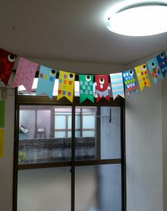 出来上がったら みんなの鯉のぼりを繋げて ガーランドの完成です🎵