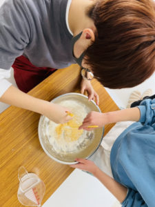 丁寧に混ぜて生地作り!