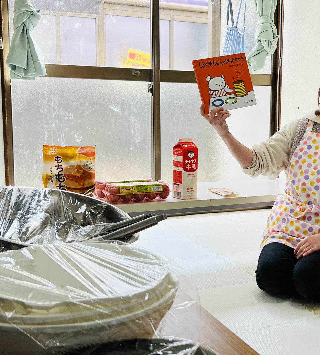午後の活動はお部屋にてホットケーキ作り!