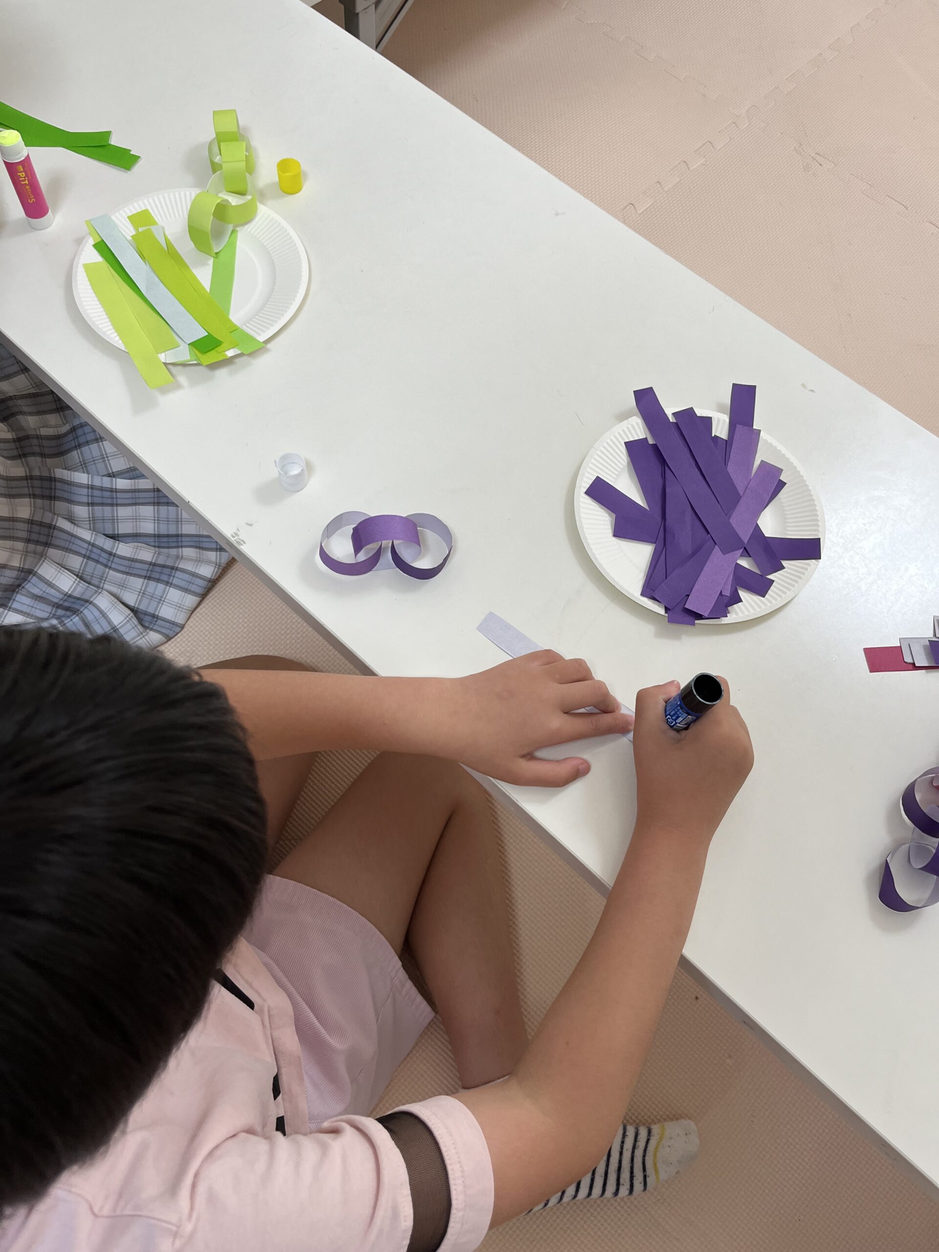 折り紙の輪っかを5個繋げて、