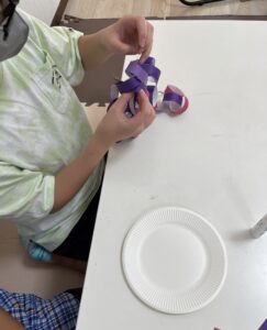 そして、すぐにできたお兄さんお姉さんには、ツルや葉っぱ作りを手伝ってもらいました。