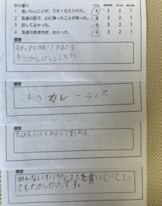自分の言いたいことが言えたか、友達の話で心に残ったことがあったのかを振り返り、