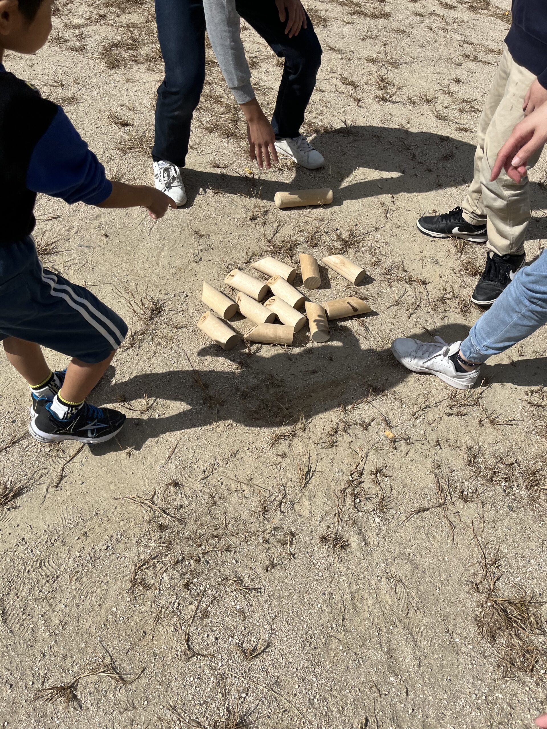 今日の朝の活動は「モルック」です。