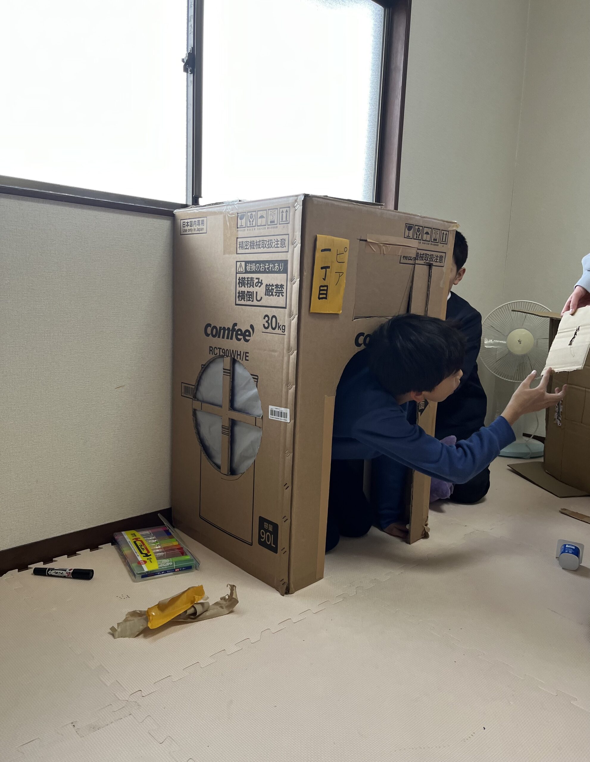 子どもたち、ここ3週間くらいダンボールの家づくりに夢中で、