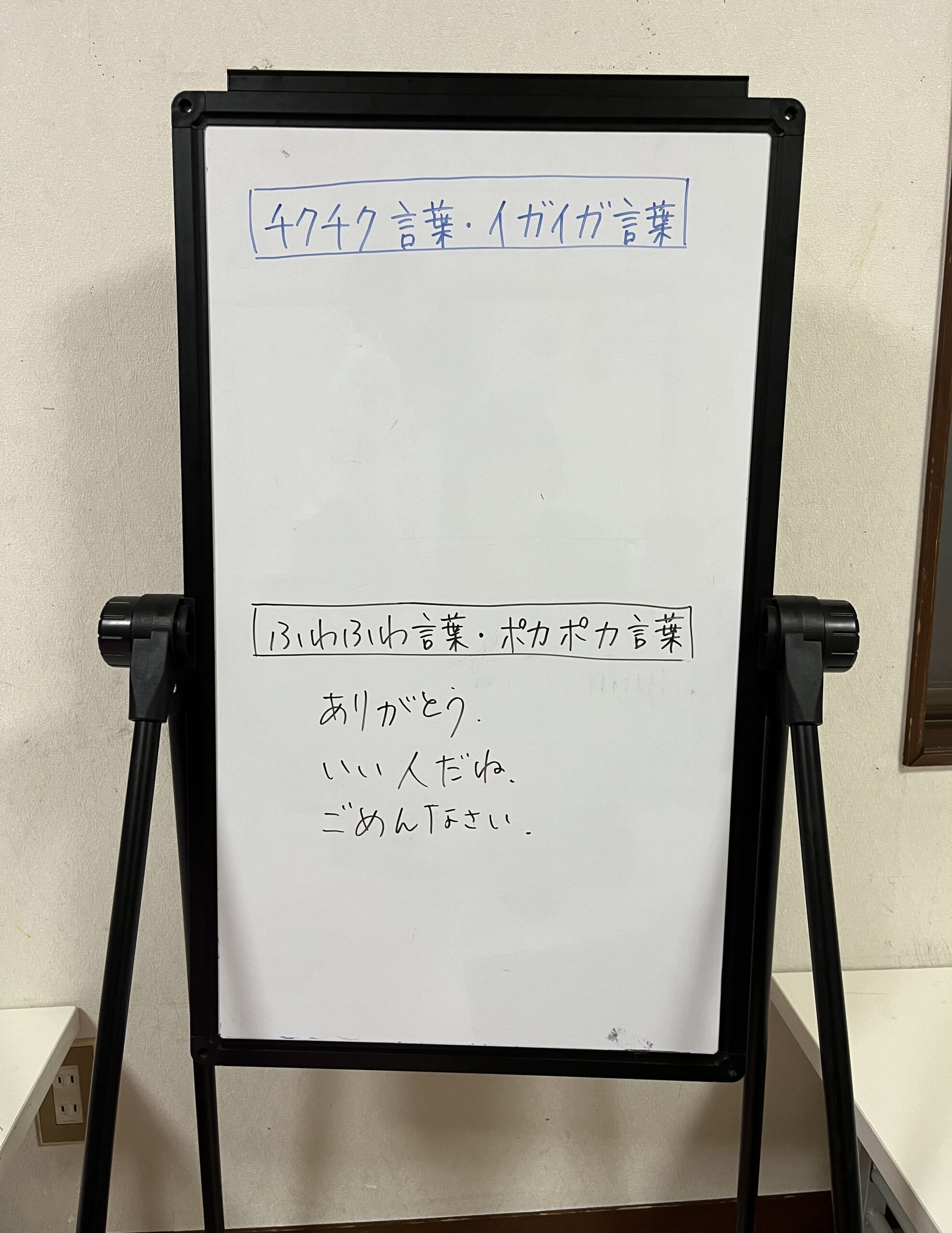 「ホワホワ言葉」と「チクチク言葉」を考えてもらいました。