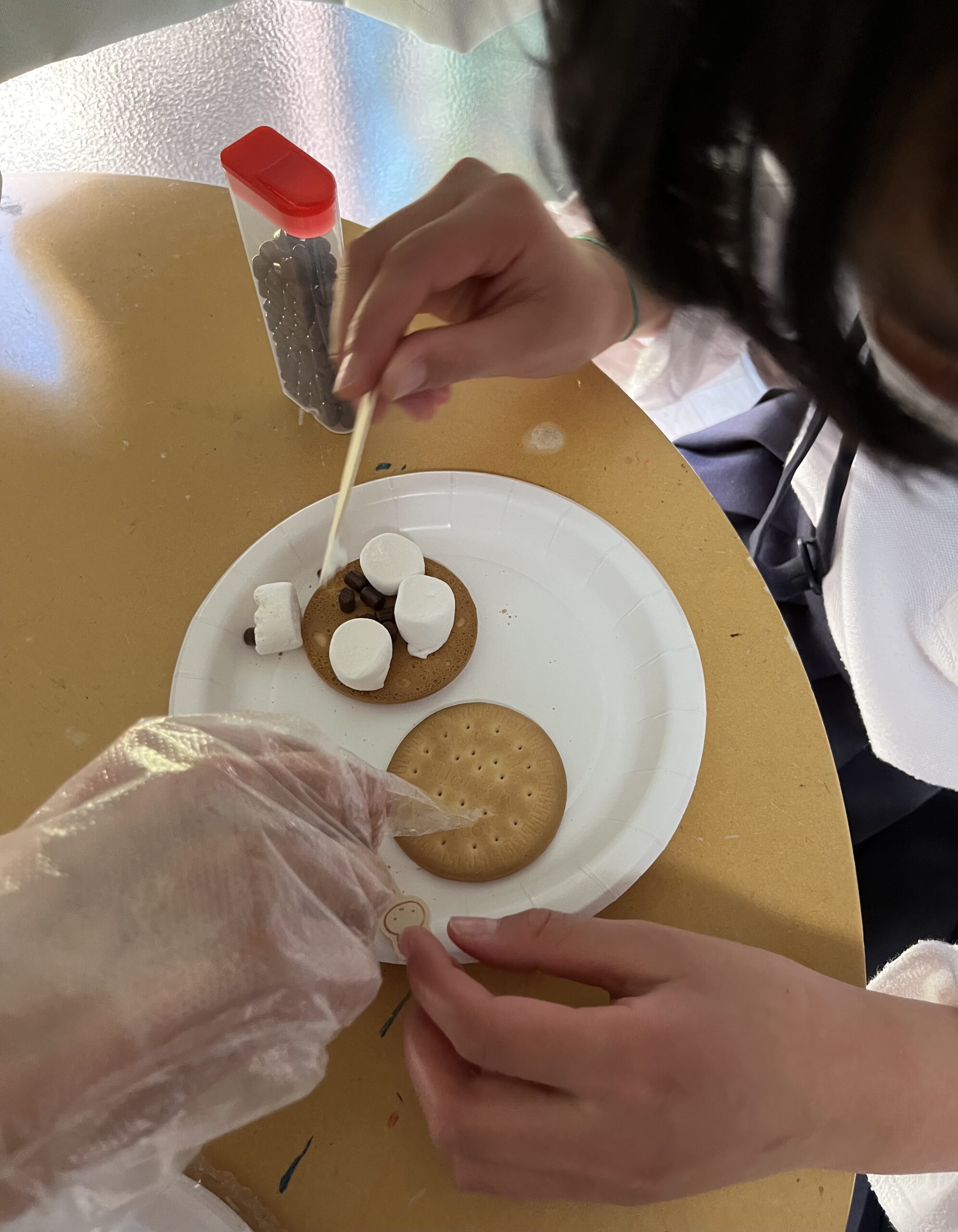 その後はマシュマロを挟んだ、簡単オヤツ作りをして、