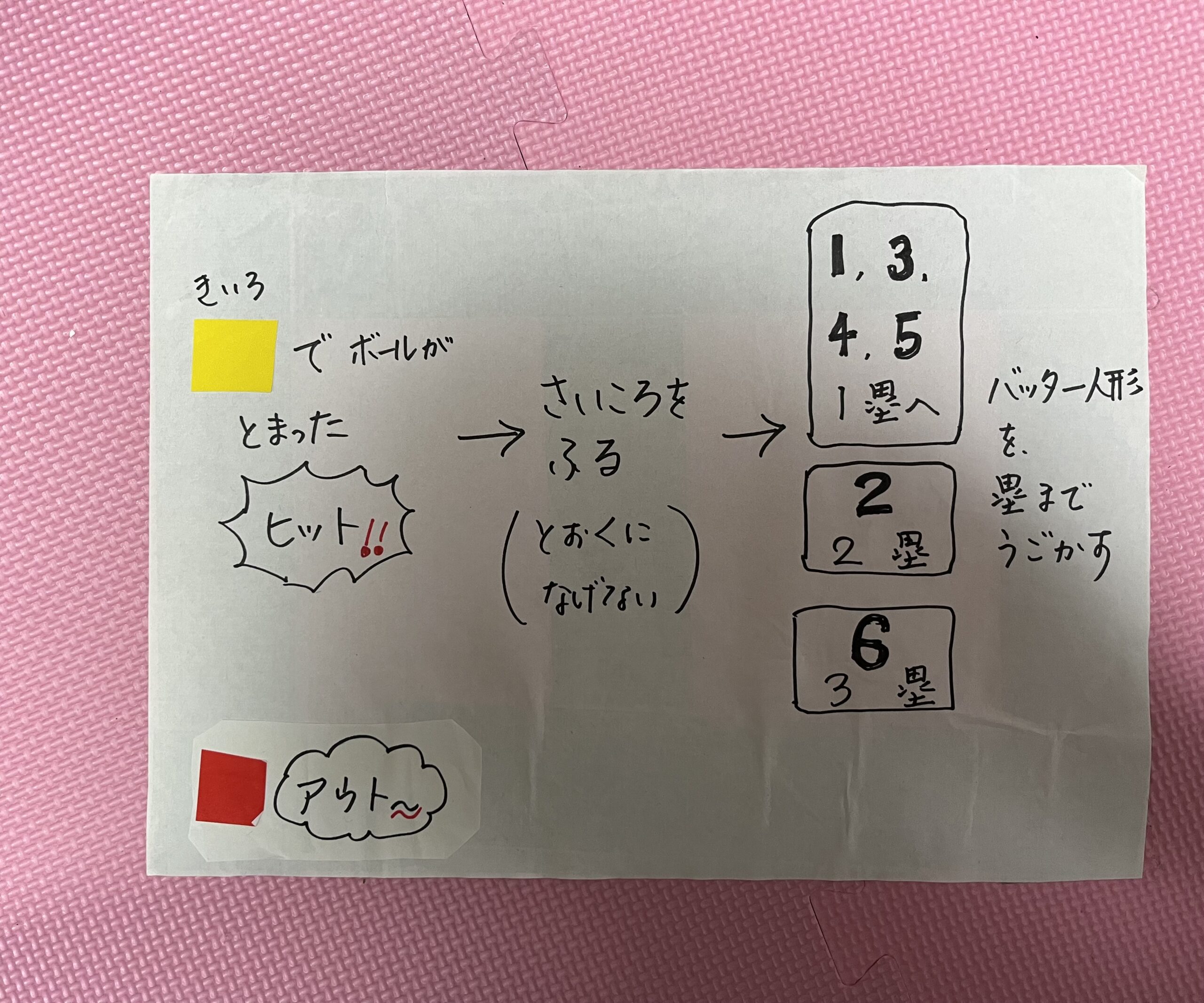 攻める方はヒットになったら(黄色のマス)サイコロを振り、