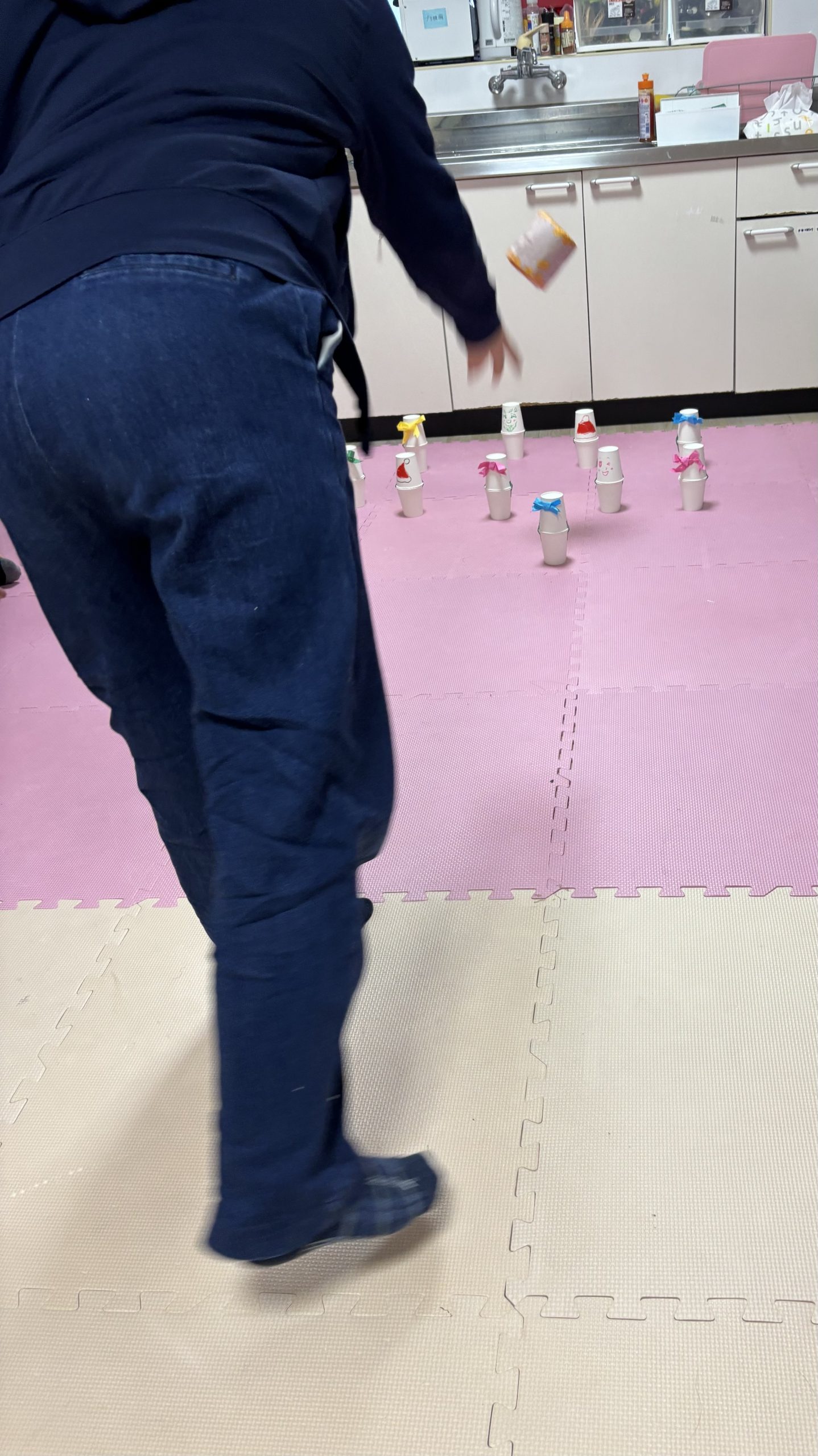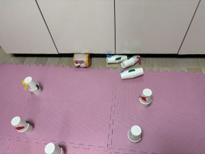 紙コップの的を狙い、倒れたら10点。