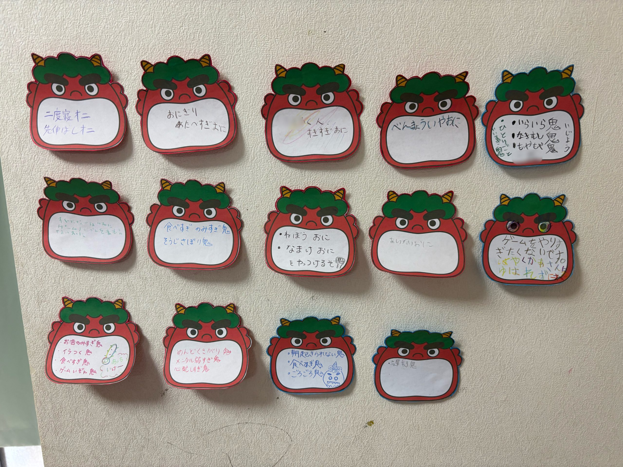 そして自分の「やっつけたい鬼を書いてもらいました。」