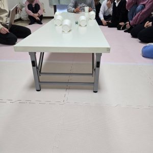 紙コップを倒した状態でテープを貼ってセッティングします。