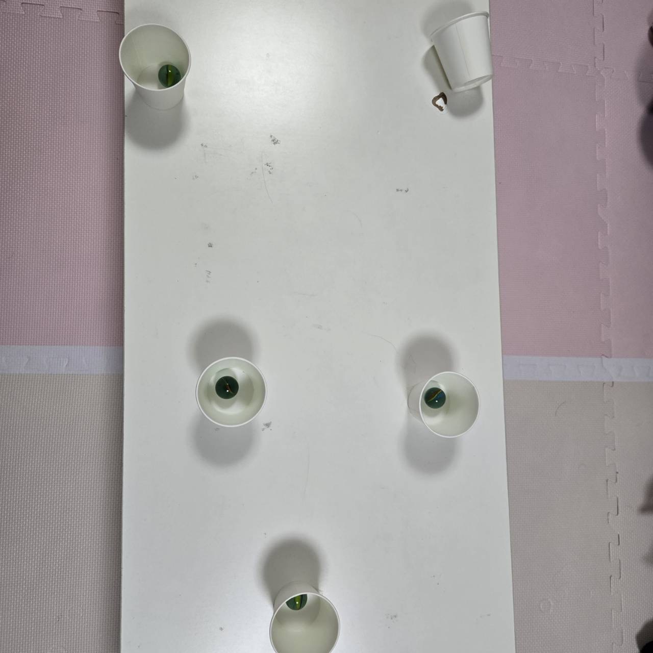そのコップを目掛けてボールを転がして入れるとコップが立ち上がります!